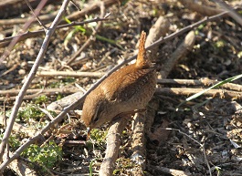 Wren – Troglodytes troglodytes. Wrens are resident here all year round, they have a loud song but are often difficult to see. This small brown bird can be found in many different habitats including gardens farms and woodlands. Because of their small body size, they are susceptible to very cold weather and huddle together in groups when roosting to keep warm.